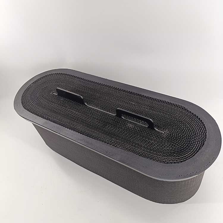 蜂窩濾芯的結(jié)構(gòu)特點(diǎn)在于其外疏內(nèi)密的蜂窩狀結(jié)構(gòu),這種結(jié)構(gòu)能夠提供較大的過濾面積,并且具有較低的流體壓力損失。在每個(gè)濾層中,第一夾縫(即進(jìn)風(fēng)孔)的總面積大于第二夾縫(即出風(fēng)孔)的總面積,這使得進(jìn)風(fēng)孔擁有更大的容灰量,不易堵塞,從而降低了更換周期和使用成本。