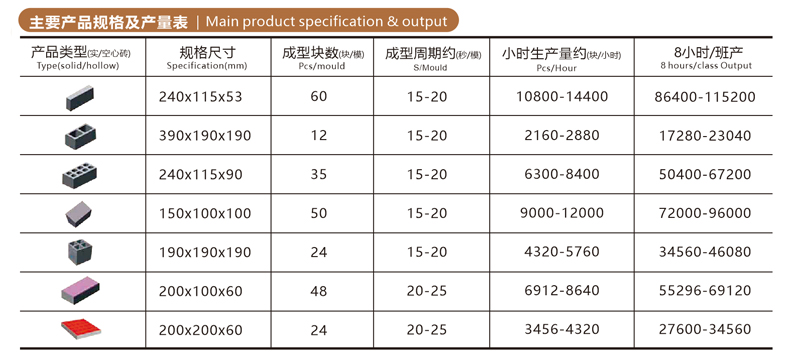 磚數量(塊/8h) 114744-191240 2.8KG/塊